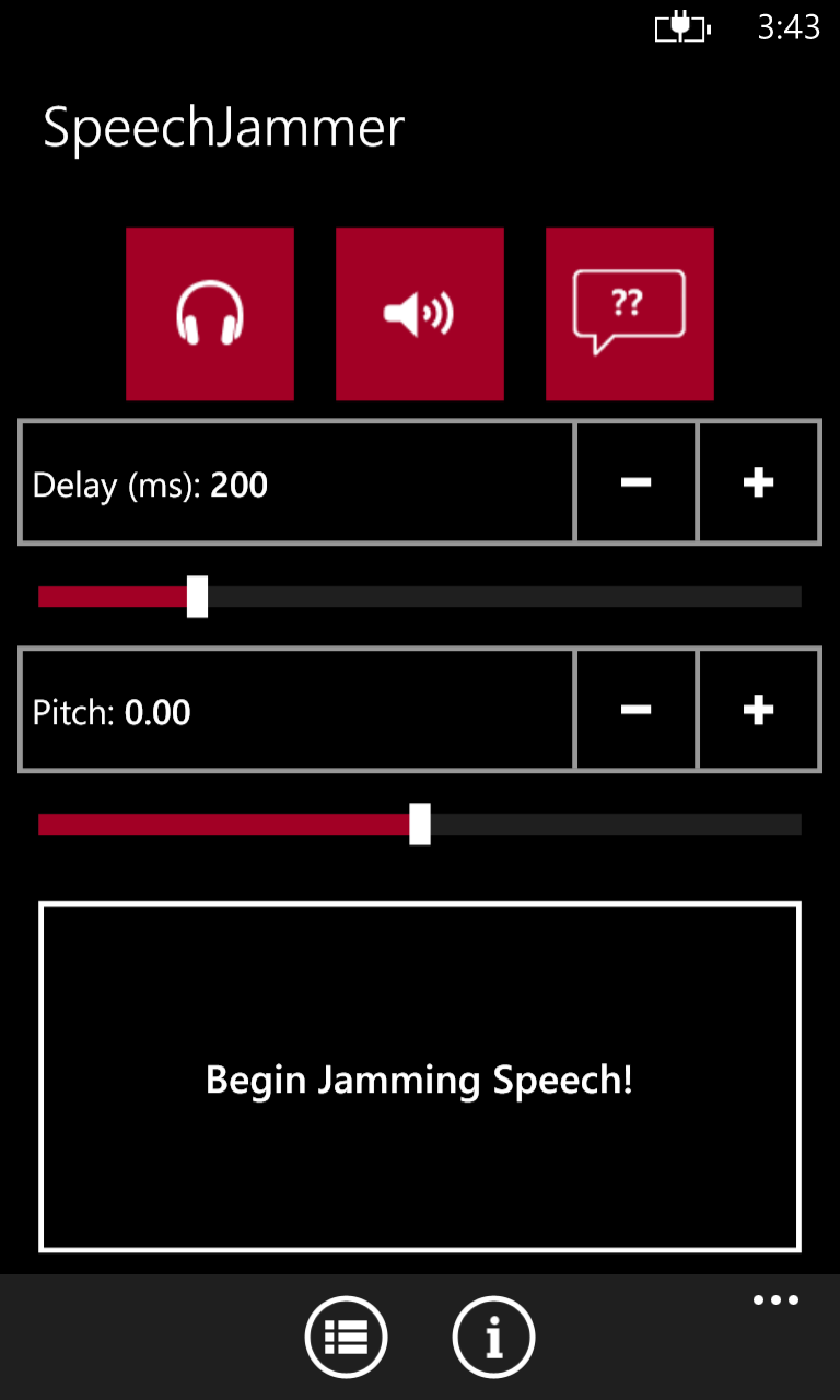 It is also buried under severe distortion, which makes recovery algorithms have a hard time. Based on the ignobel prize winning research, speechjammer plays your voice back to you at an adjustable delay, making it difficult to speak. Allow the browser access to your microphone. Speech jammer plays your voice back to you at a slight delay, rendering most people incapable of speech. Description turn on speechjammer, plug in your headphones and try to talk! Browsercam provides you speechjammer for pc (windows) download for free. Publisher's description from yu chen hou: A speech jammer is a device that inhibits a user from speaking in coherent sentences. Works best if you try to read something! * added trial mode, try out the speech jammer for 90 seconds for free! Through the delayed auditory feedback effect, the speaker will have trouble articulating while speaking, effectively inhibiting his or. Even though the official desktop version for speech jammer ultimate is not available, you can still download and install speech jammer ultimate on pc using a few tricks. This is due to the brain being confused by the slight delay in auditory feedback of the users own voice.
